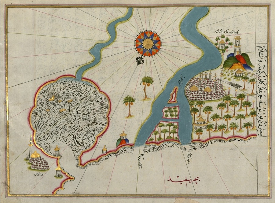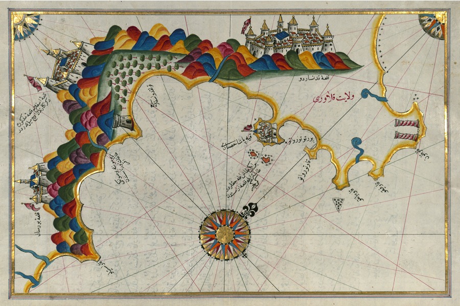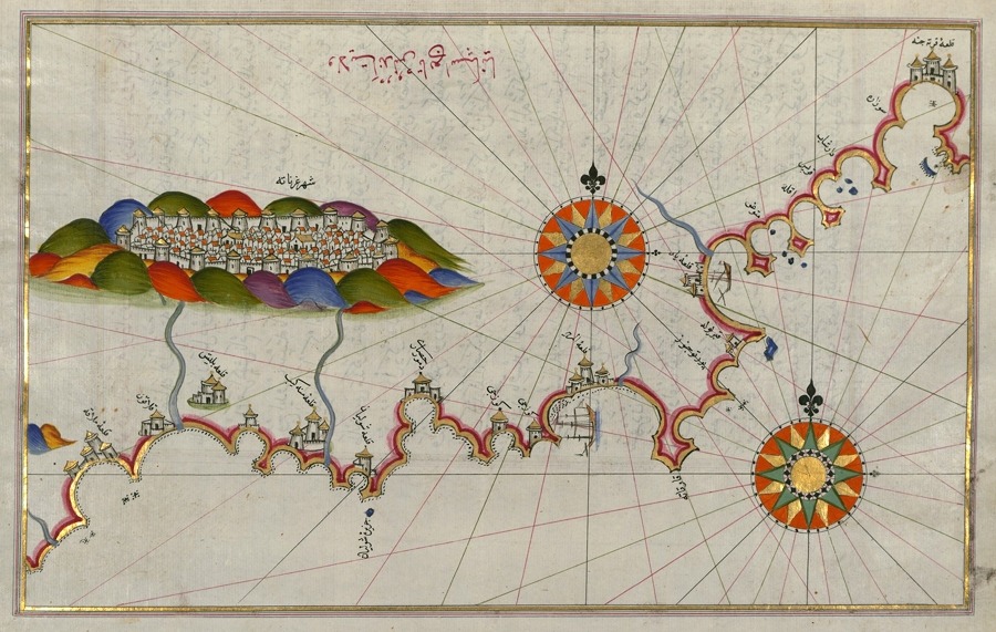 L’auteur de cet ouvrage, fin lettré, collectionneur de carte et cartographe lui-même dessina cet ouvrage extraordinaire durant ses voyages autour de la Méditerranée avec son oncle Kemal Reis, illustre corsaire Turc. Son travail comprend deux parties ; La première est dédiée aux informations sur les types de tempêtes, les techniques de navigation (utilisation du compas, des cartes portolans et des étoiles), et la présentation détaillées des ports et côtes ainsi que les caractéristiques des principaux océans et les terres alentours.