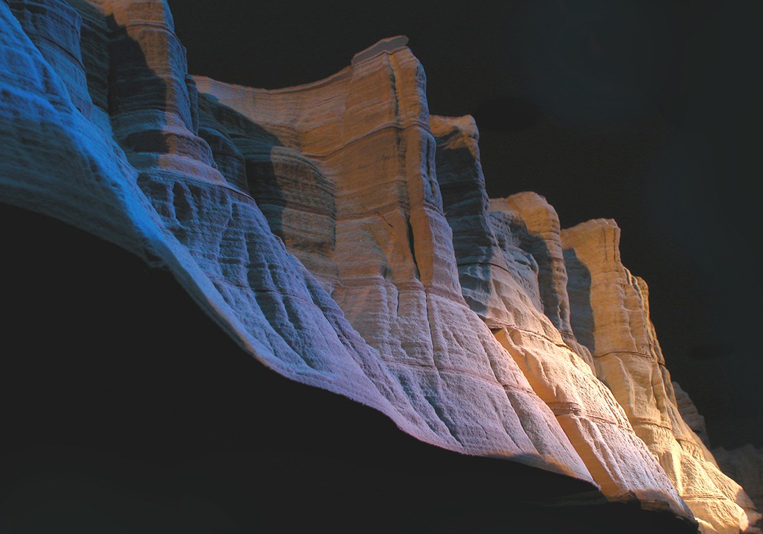 Guy Laramée est un artiste multi faces qui, pendant 30 ans, a exercé son art comme auteur de théâtre, metteur en scène, compositeur, luthier, chanteur, peintre. C’est à son talent de sculpteur que l’on rend hommage aujourd’hui à travers ses incroyables séries de sculptures de livres« the great wall » et « Biblio ». Il y modèle les pages de livres anciens pour révéler des montagnes sereines, des plateaux tranquilles et des plaines imperturbables.